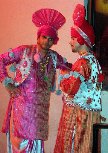 The scene was equally memorable: the energized audience, the concession stands (mango lassi and chai; daal and samosas for sale), and the performers milling around in the Orpheum’s courtyard who, in spite of being festooned head-to-toe in satin, pom-poms, shocking pink, and giant fan-hats, still managed to look masculine and sexy. Must be the moves. And their extreme confidence—not every guy can pull off this look: