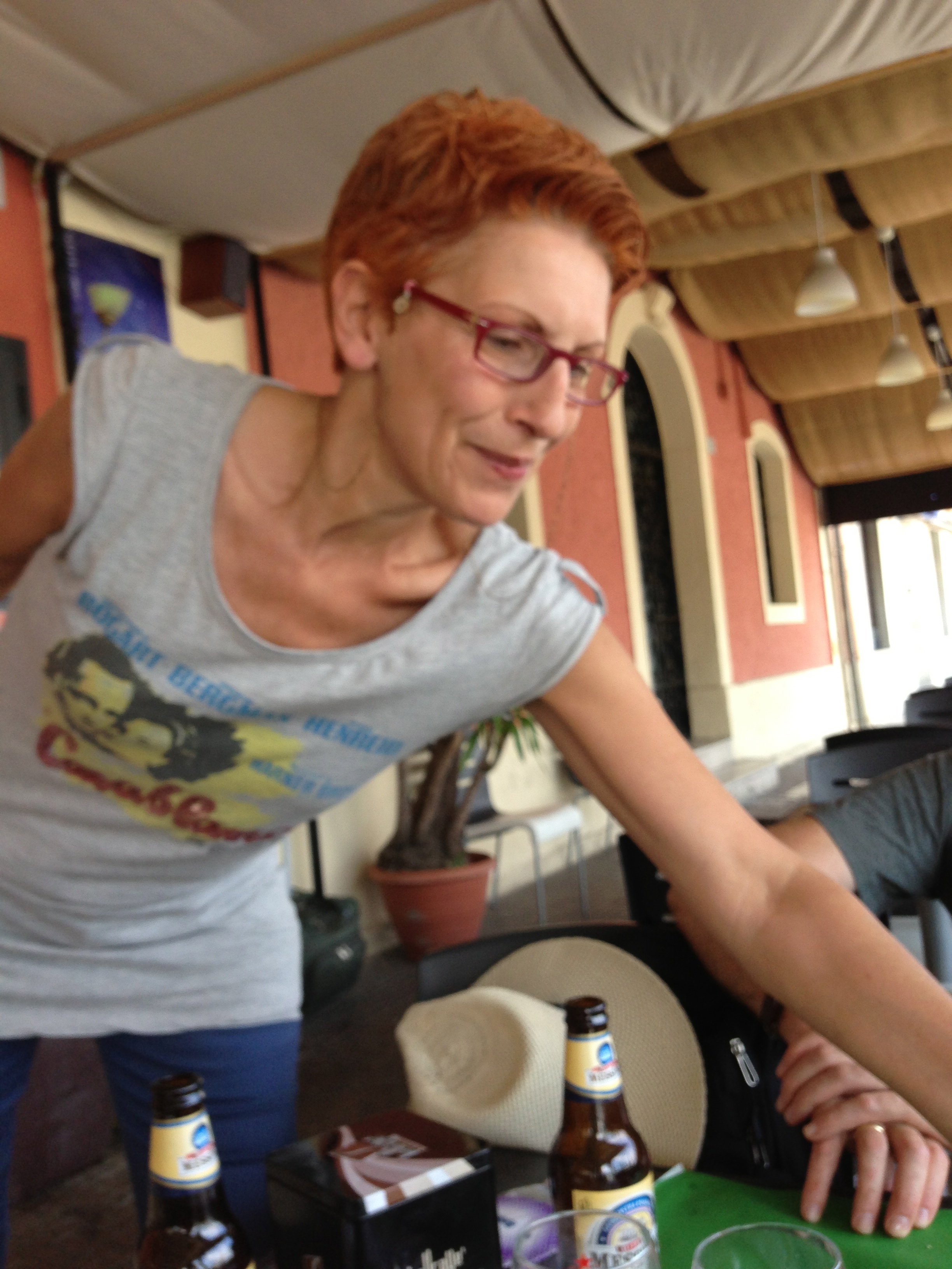 Across the street was a little cafe with outside tables, so we rolled our bags over and sat down, planning to order some sandwiches.