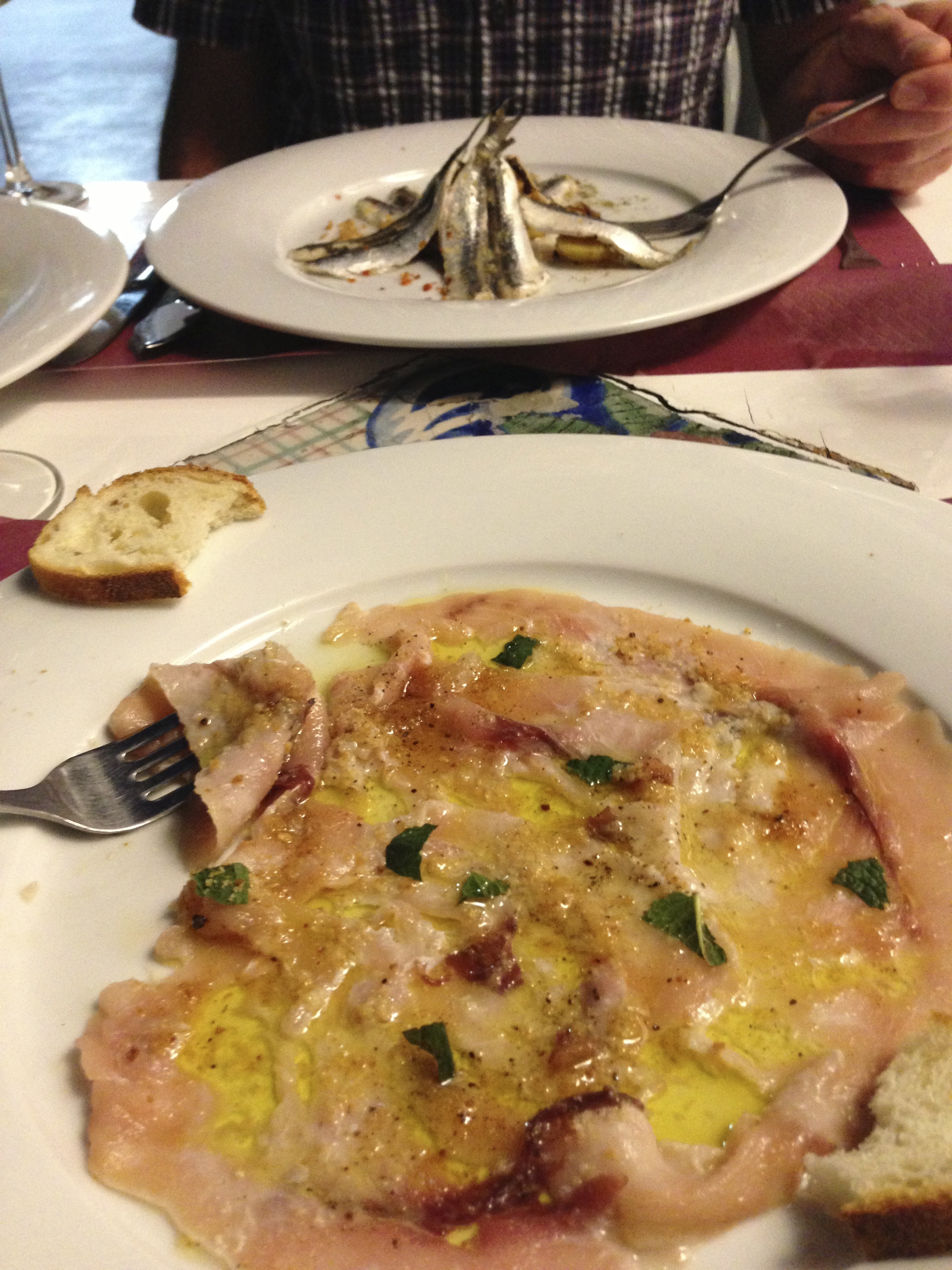 While we were on Salina, we ate three times at arguably the best restaurant on the island, ‘nni Lausta. The chef, a 20-year old wunderkind, works in Paris off-season. If I find out where I will let you know. We loved the anchovies and tuna carpaccio from ‘nni Lausta…