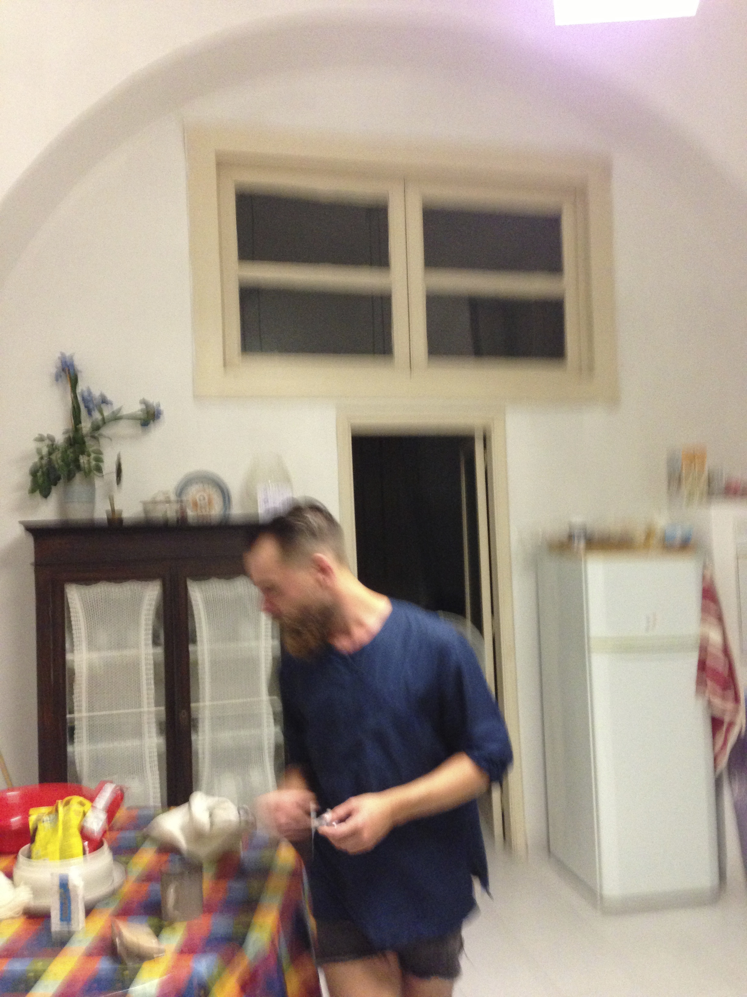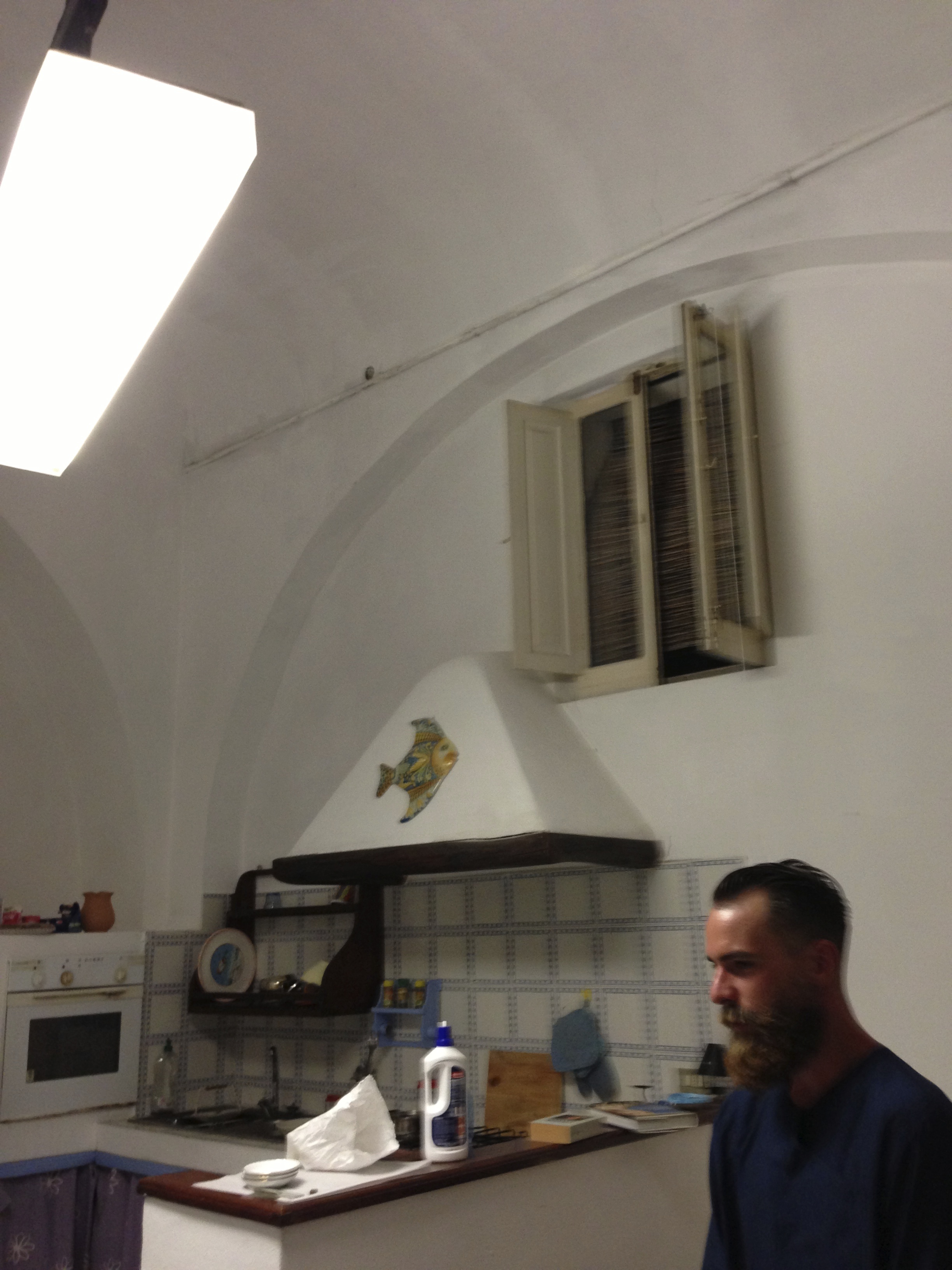 We became friends with Alberto, our waiter at ‘nni Lausta, and hung out with him quite a bit. Here he is, a bit of a blur scurrying around, making espresso for us around midnight in the apartment he shared with the chef and the other kitchen staff from the restaurant: