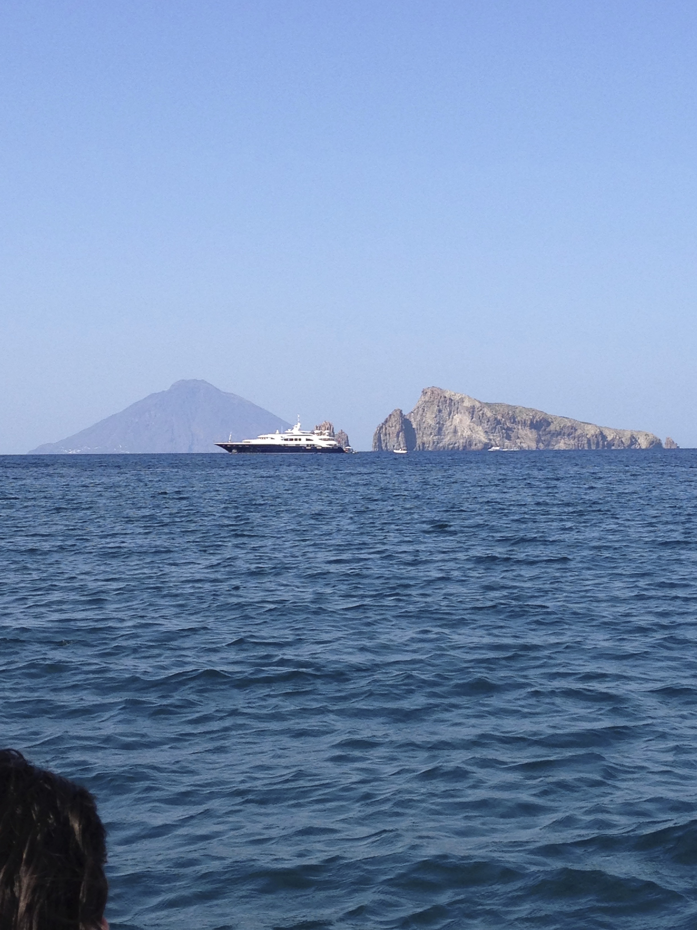 And here’s the real Stromboli (on the left), as seen from a boat near Panarea: