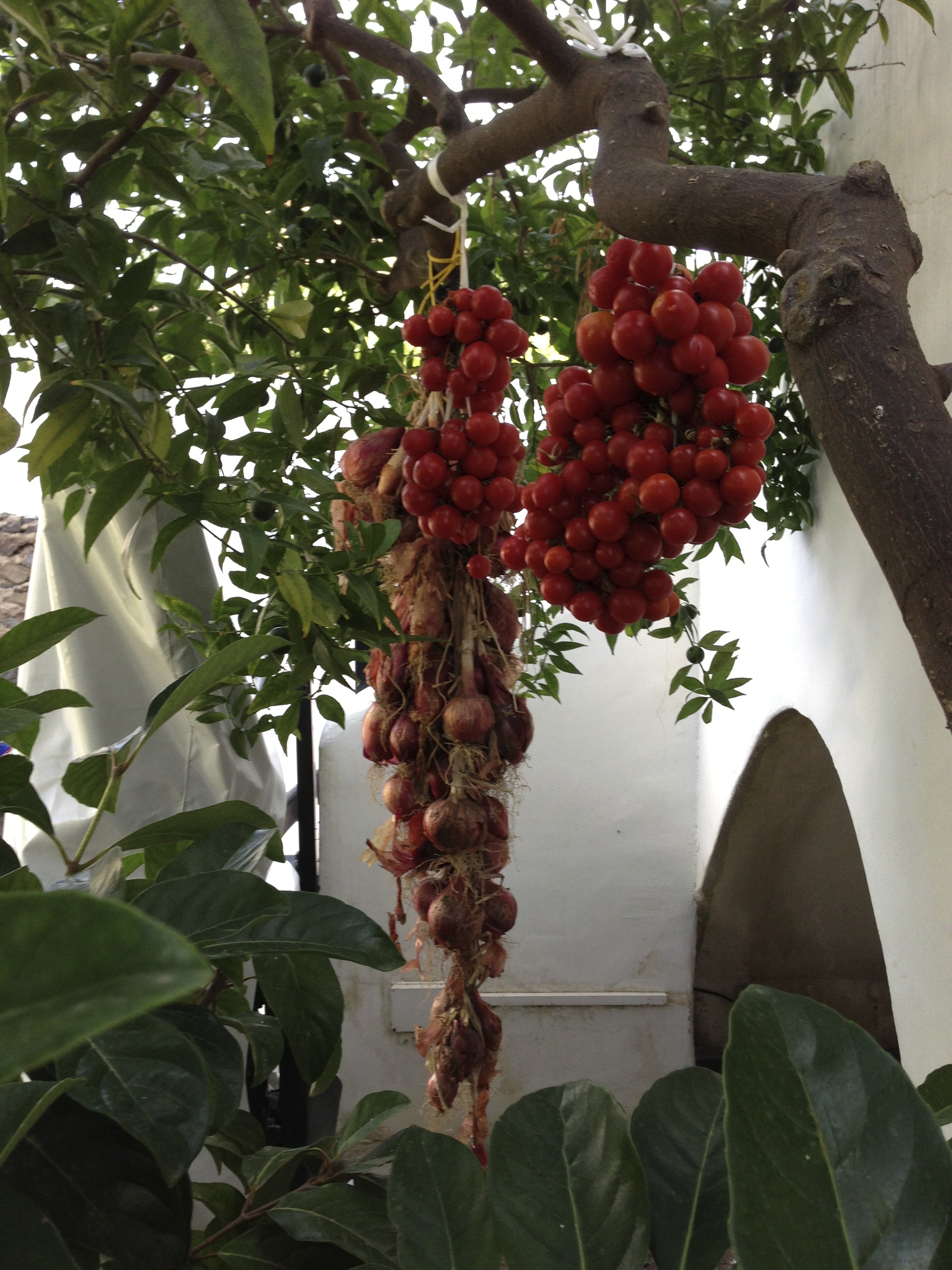 Salina is the only place where I’ve seen fresh tomatoes and red onions tied and hung outside for storage. The locals told me it’s only done in Salina this way–nowhere else–and that it keeps the vegetables fresh for a very long time: