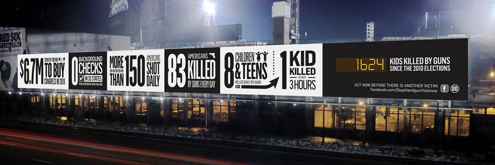 The arms race. The counter now reads over 8,000. StopHandgunViolence.org billboard on the Mass Pike in Boston.